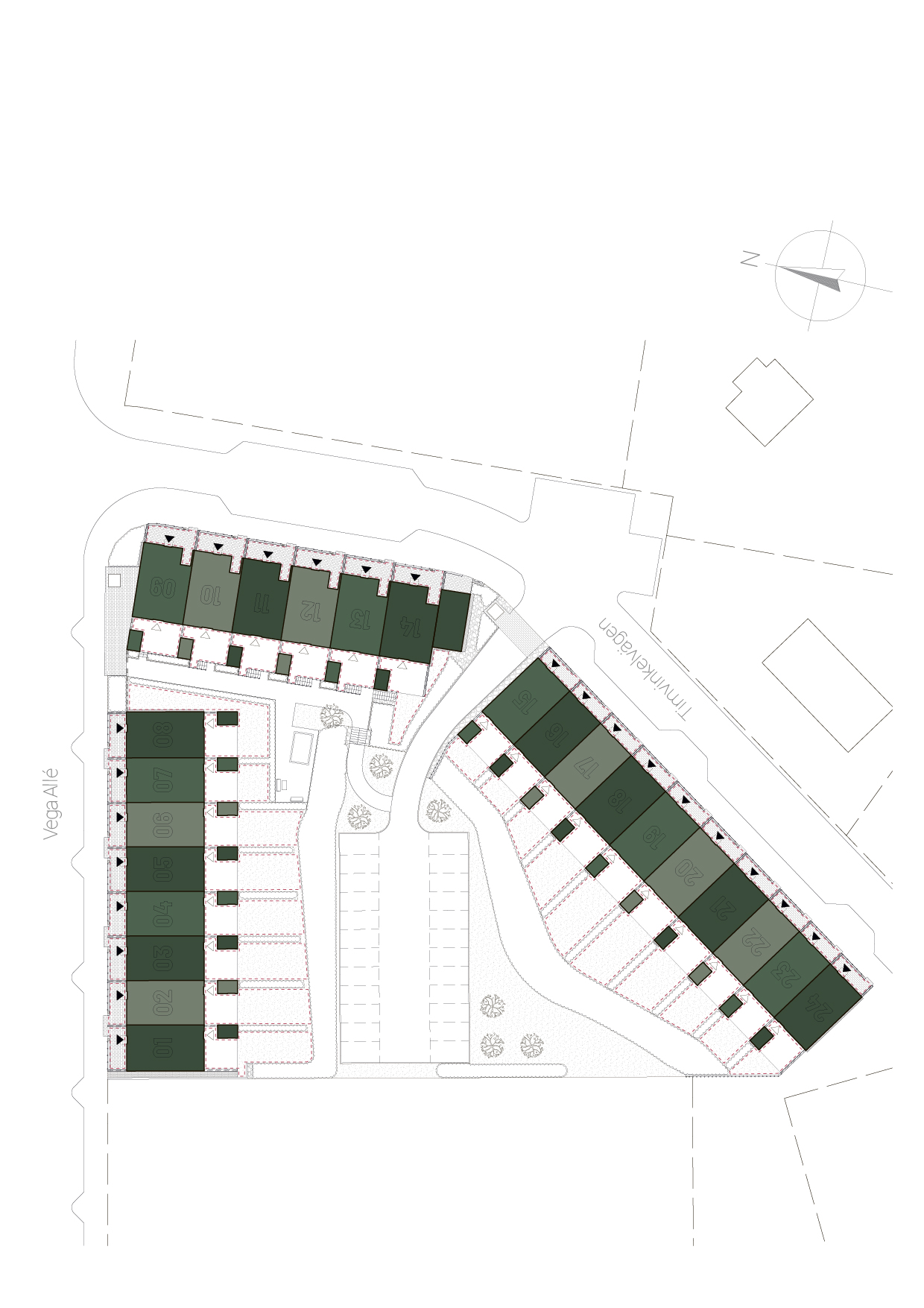 Som bostadsrättsinnehavare i Brf Vintertriangeln ansvarar du för skötseln på din tomt som är upplåten i din bostadsrätt, se markering i rött. Övriga områden sköts av föreningens föreningens medlemmar tillsammans.